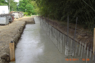 Je nach Bedarf und Anforderungen führen wir die Arbeiten in konventioneller Bauweise, vor Ort geschalt und betoniert oder in Systembauweise durch den Einsatz von Betonfertigbauteilen durch.